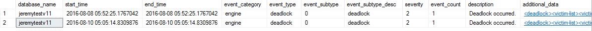 select* from sys.event_log where database_name='YourDatabaseDame' and event_subtype_desc='deadlock'