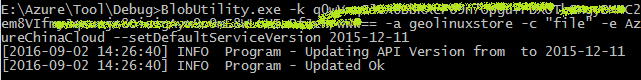 BlobUtility.exe -k <AccessKey> -a <StorageName> -c <ContainerName> --setDefaultServiceVersion 2015-02-21示例: