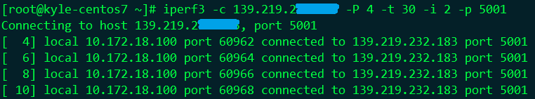 #iperf3 -c 139.219.2XX.XXX -P 4 -t 30 -i 2 -p 5001