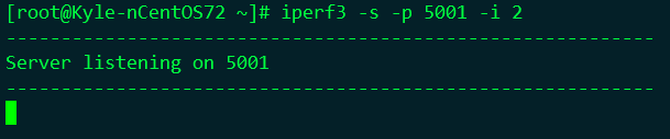 首先在 Server 端,我们运行以下命令使 iPerf 监听 5001 端口,每 2 秒输出一次结果。