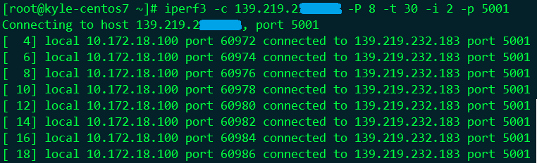 #iperf3 -c 139.219.2XX.XXX -P 8 -t 30 -i 2 -p 5001