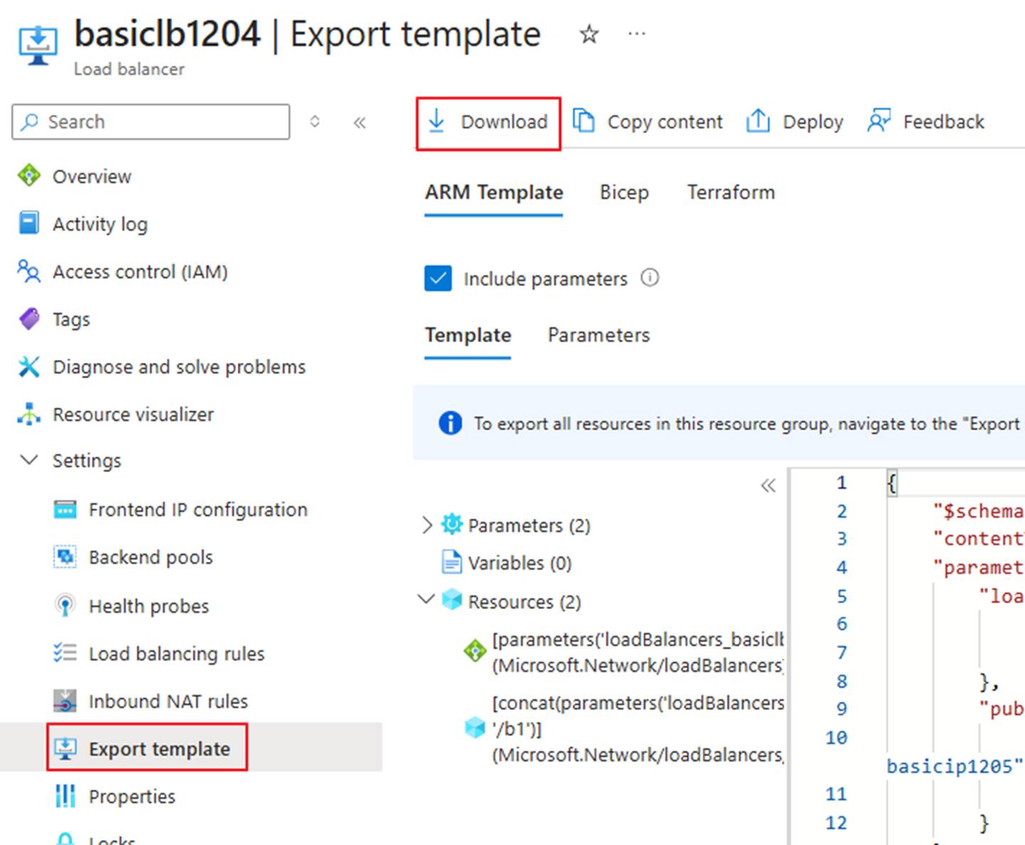 - Back up all current configurations of the Basic Load Balancer using screenshots or by exporting a template, including backend pools, health probes, load balancing rules, etc.