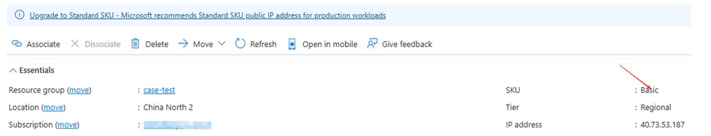 - The upgrade is complete. Check that the public IP SKU has been changed to Standard.