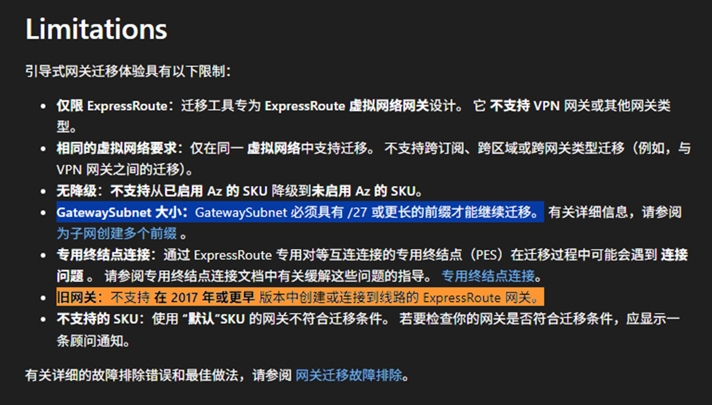 另外,如果发现客户的ExpressRoute Gateway是早于2017年创建的,可以与客户沟通,删除并且重新创建新的ExpressRoute Gateway。如果您不确定创建时间,请您直接开工单和技术支持沟通。