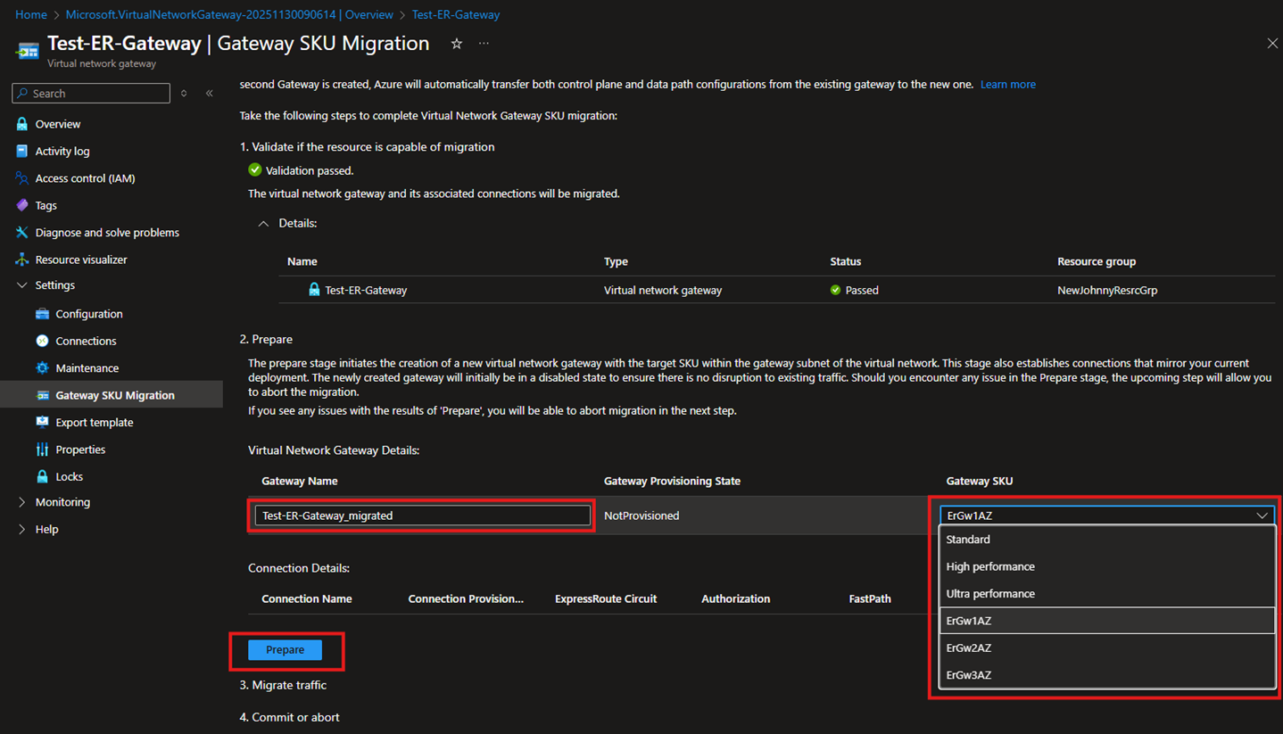 在 Azure 门户中迁移到已启用可用性区域的 ExpressRoute 虚拟网关 - Azure ExpressRoute | Azure Docs