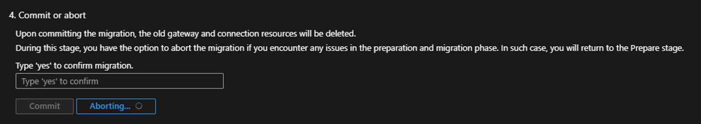 - 如果在上述第4步中,验证通信出现问题,需要终止迁移的话,我们必须重复上面的步骤3,重新选择旧的ExpressRoute Gateway,并点击“迁移”。成功迁移后会注意到旧的ExpressRoute Gateway重新开始处理流量。