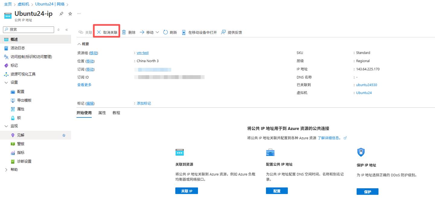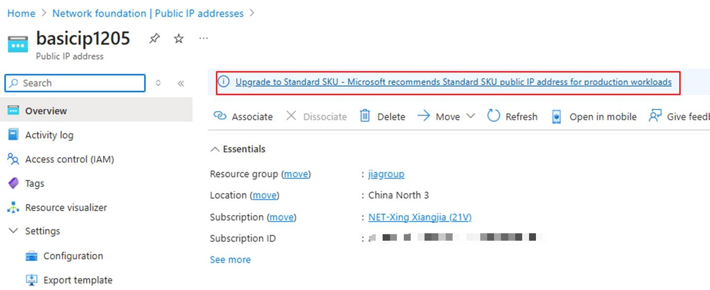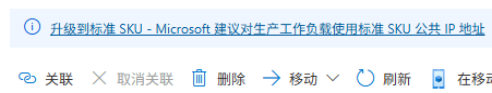 2、公共 IP 不能与任何资源相关联,否则将无法升级。 有关详细信息,请参阅创建、更改或删除 Azure 公共 IP 地址 - Azure Virtual Network | Azure Docs ,了解如何取消公共 IP 关联。