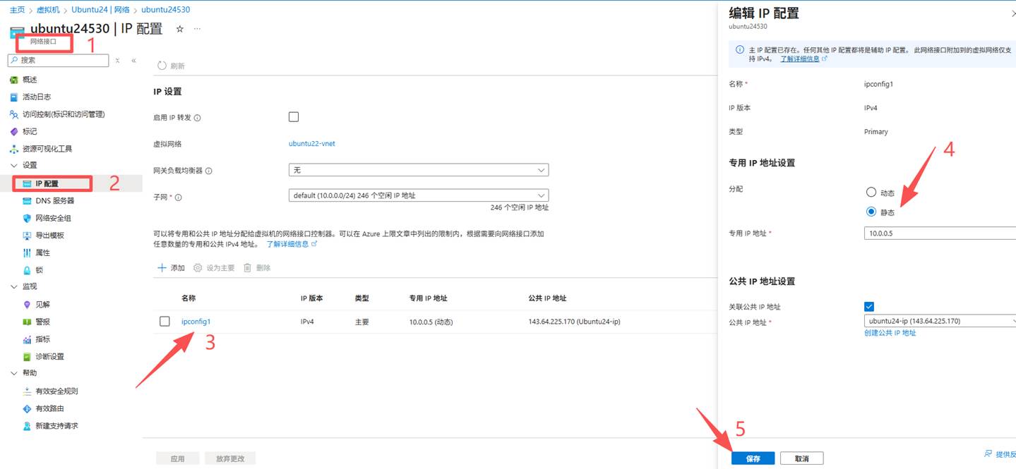 1、 Vm 的public ip升级,先将其调整为静态,会保持ip 不变: